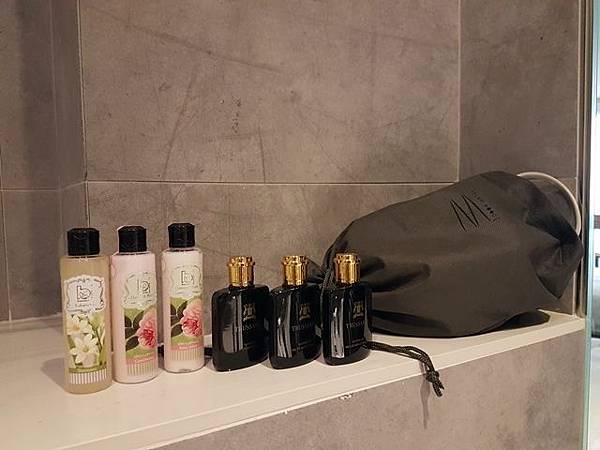 可能是四人房之故,故準備了兩套沐浴備品。黑瓶身的是義大利知名品牌Trussardi,該品牌以「旅行」為創作主題。加之此品牌的香氛系列頗為知名,故無論是沐浴乳、洗髮精甚至護髮,都透出淡雅的香氣,十分迷人。粉色瓶身的是台灣在地香氛品牌,以「人本自然,平衡生活」為品牌理念。特別的是那瓶洗髮精的香氣,是少見的晚香玉香味。不同於Trussardi的淡雅,這款洗髮精透著清香,洗完很讓人舒服。旅館選用這兩款備品,讓人藉由香氣達到放鬆紓壓,很是貼心。若不是個人對於備品有莫名的興趣,也不會發現這小小的貼心細節吧!