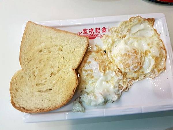 吐司中規中矩,沒什麼特別之處。倒是雞蛋中間的蛋黃沒熟,拿吐司沾取著享用,好吃極了。