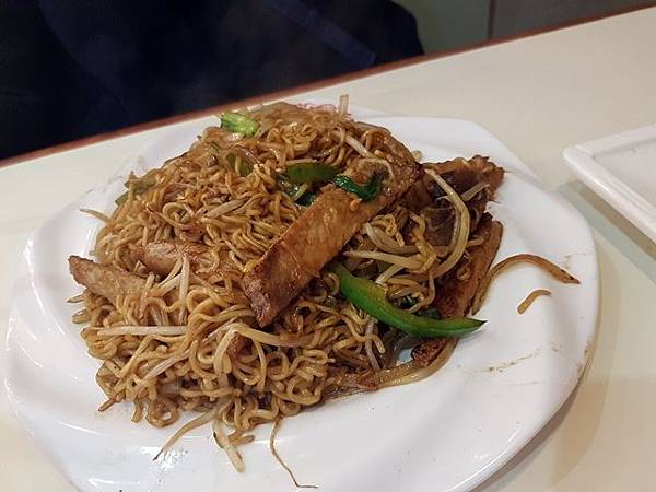 因為這盤豬扒炒麵,兩個人各挺了一顆大圓肚滿足地走出店門口。