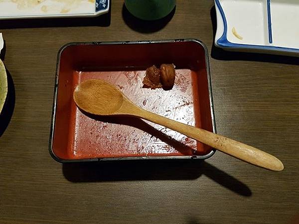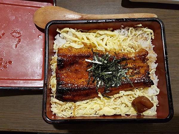 小的鰻魚飯鰻魚只有一片,打開漆器雖有些空虛感,不過你若是吃過日本小碗的鰻魚飯,還會覺得這算是有誠意的。