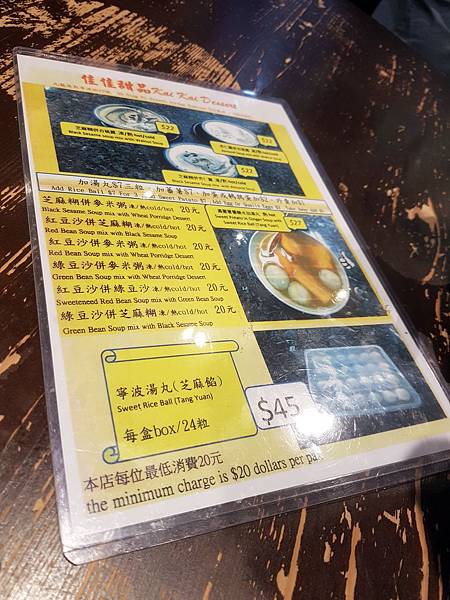 與提醒我們裡面有位子的香港婆婆們坐在同一桌,他們單子看都沒看就直接點了三碗甜湯,只是分別是紅豆番薯跟芝麻。可香港甜品我只情有獨鍾楊枝甘露,即便發現這些紅豆綠豆似乎才是招牌,依舊只點楊枝甘露(HKD32)。