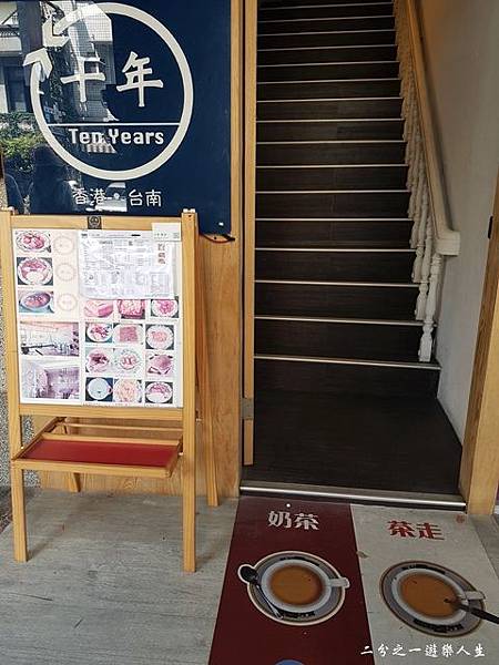 入住赤崁樓附近的飯店,晚上挺著飽肚散步於街上,少了人車的喧鬧,夜裡的寧靜讓人不敢相信這裡就是熱鬧赤崁樓。走著走著妹妹喊了一聲:「姊,快看。」原來是地上貼著奶茶茶走的字樣,我們倆相視而笑,默默的決定明天中午就來此用餐。