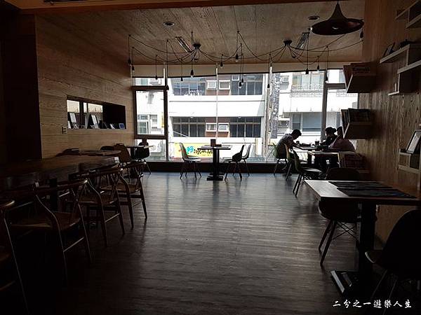 走往櫃檯點單,回頭望向座位區,竟是這般好看,逆光的木頭空間,少了暖調多了點簡潔味道。