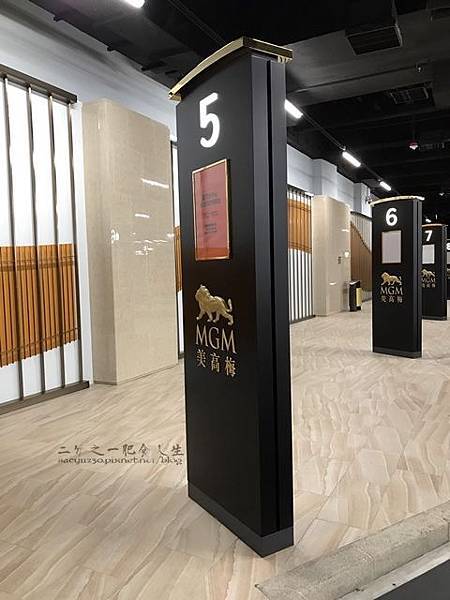 上圖為剛從虎航下機時,所拍下的景色。而澳門機場後面高聳的建築物,就是密集於氹仔的豪華酒店群。從照片裡不難發現美獅美高梅就位於永利皇宮與新濠天地的中間,而實際抵達美獅美高梅,也驗證了心中所想眼中所見,果然距離有水舞秀的永利皇宮只是幾百公尺的距離而已。若從不同的出入口走出來,離新濠天地也不過數分鐘的距離,步行反而比等待接駁車還來得便利。