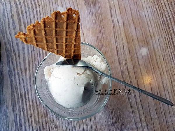 方才中午吃的餐點還未消化完全,肚子並不太餓,便只點了一球芋頭冰淇淋吃(40元)。芋頭香氣淡淡的,不會很甜,一旁插著的餅乾片,若再增添點芝麻香氣,就跟我在越南吃到的冰淇淋餅乾十分相似了,那可是會讓人懷念的味道。朋友點的紅豆香蕉冰,只淺嚐一口並未拍照。香蕉的香氣極為濃重,搭上不會過甜的紅豆,確實還蠻不錯的,只是我還是愛這顆芋頭冰淇淋多些。