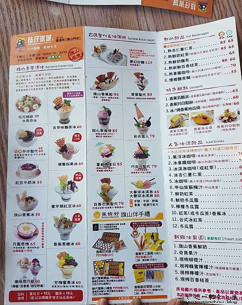 這間位於旗山老街轉角處的枝仔冰城,頗具規模,一樓為廚房及販售部,二樓則以座位為主。若要入內用餐,建議直接找個位置入座畫單再交給二樓的服務人員即可。由於店家生意好,等餐點上桌需要一點時間,當天大概等了約20分鐘,才有得吃。但反正可以邊吹冷氣邊坐著休息,並無傷大雅。(除了冰品也有販售簡餐、火鍋)