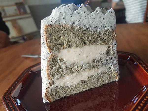 這天選中的蛋糕是芝麻桂花芋泥純米蛋糕 (140元) ,名字複雜了些,口味卻搭配得很巧妙,喜歡芝麻的人千萬不要錯過。